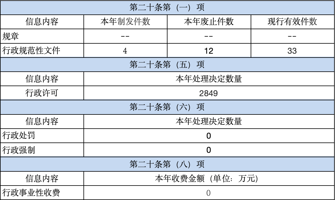 本年度参加新闻发布会2次,开展调查征集4次,每季度公开政务服务咨询、投诉回应情况,选择适当咨询件进行来信公示。对有效期内的规范性文件进行了清理及动态调整更新,制发4件,废止12件,现行有效33件。